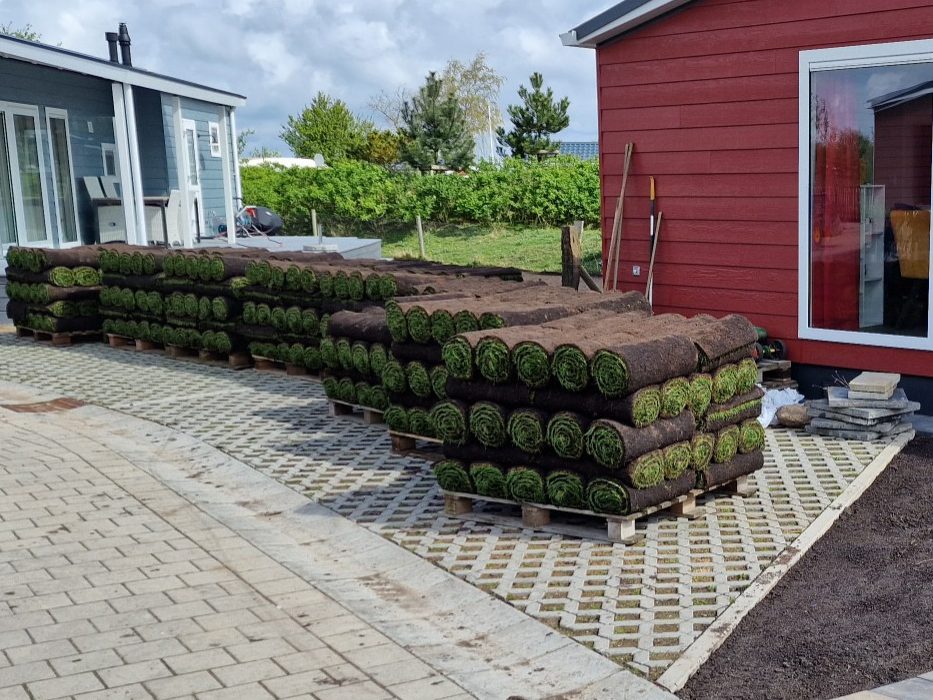 Ich verwende ausschließlich hochwertigen, am gleichen Morgen geschnittenen Rollrasen aus der Region für beste Ergebnisse.